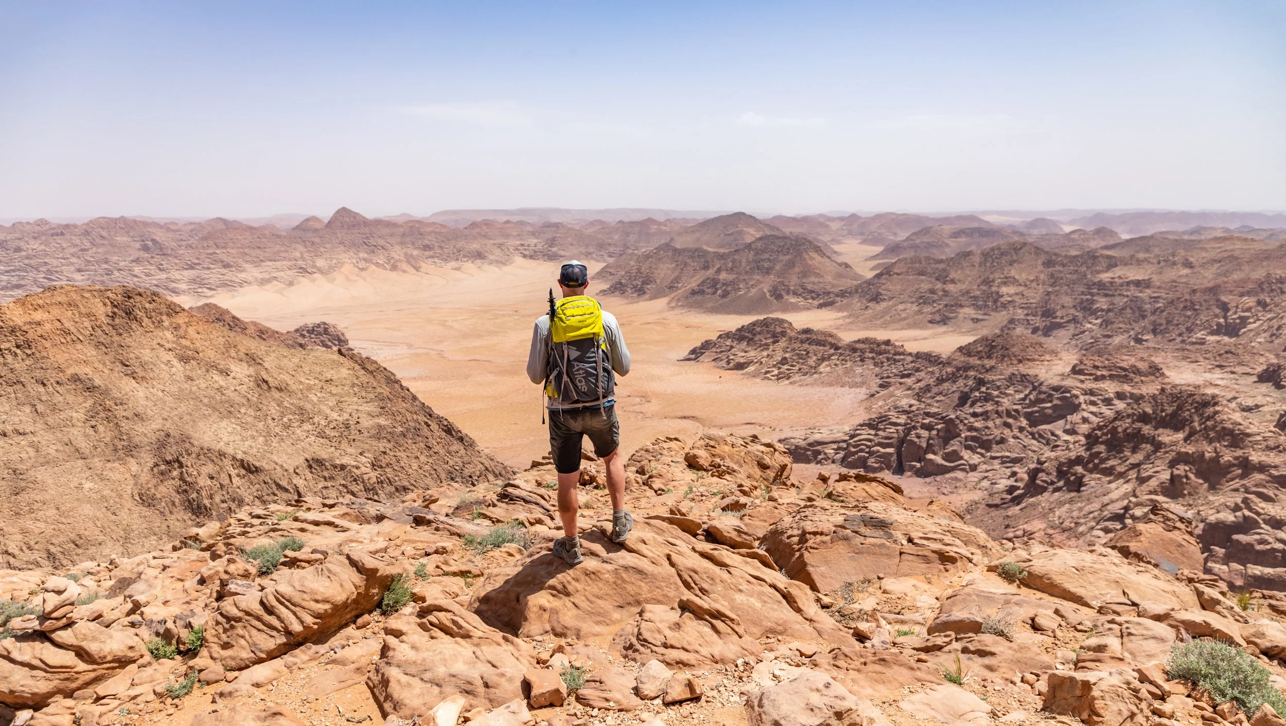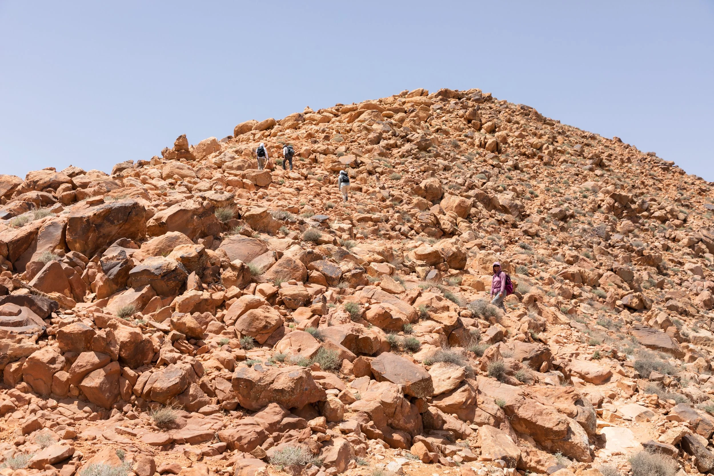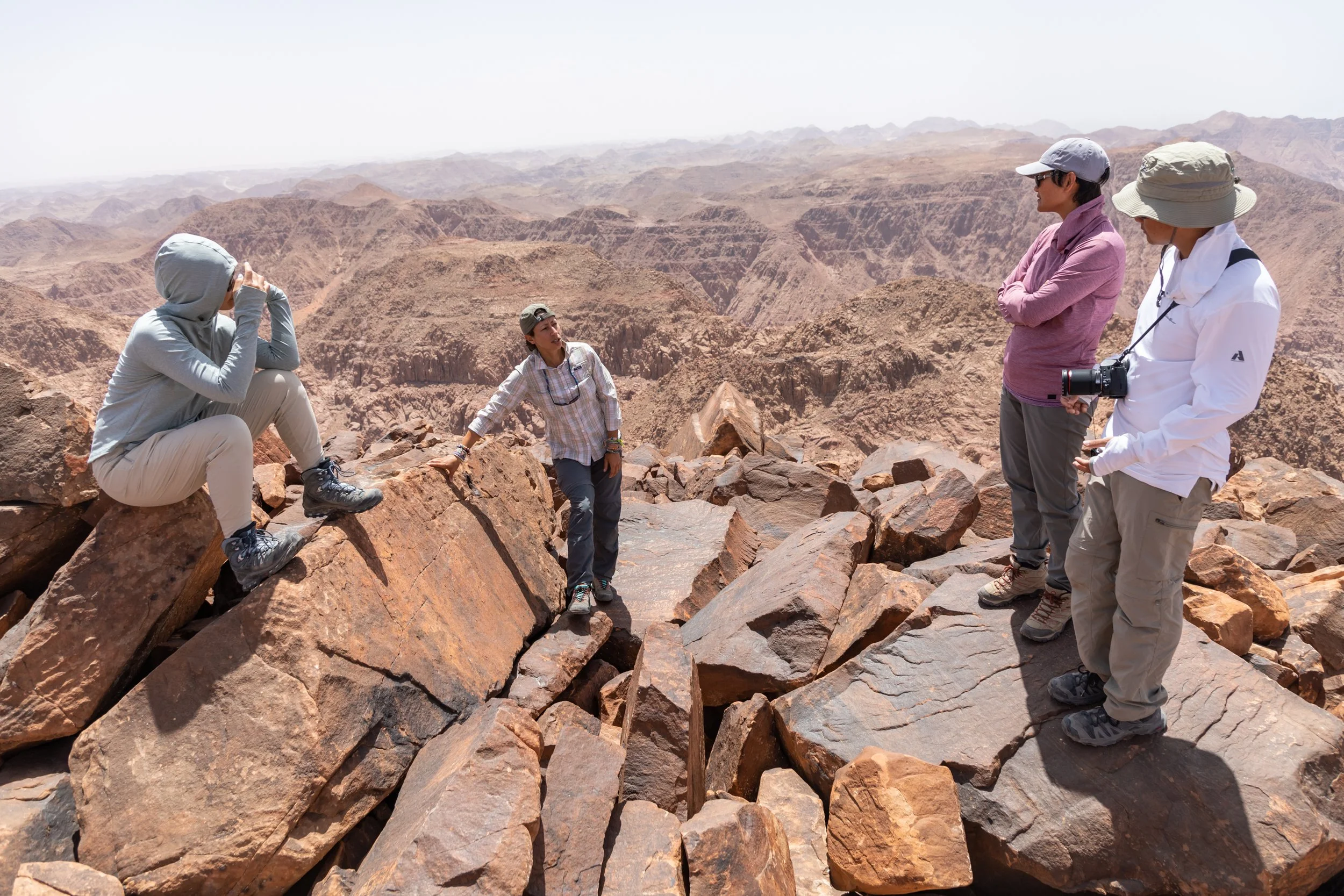 The hike up to the peak of Jebel Um Ad Dami is pretty short, about a mile and a half, but with over 1,400 ft. of elevation gain, it’s moderately challenging. Although fun to walk on, the rocky terrain also required us to be mindful about each step we took. Certain sections also demanded the use of both hands to scramble upwards.