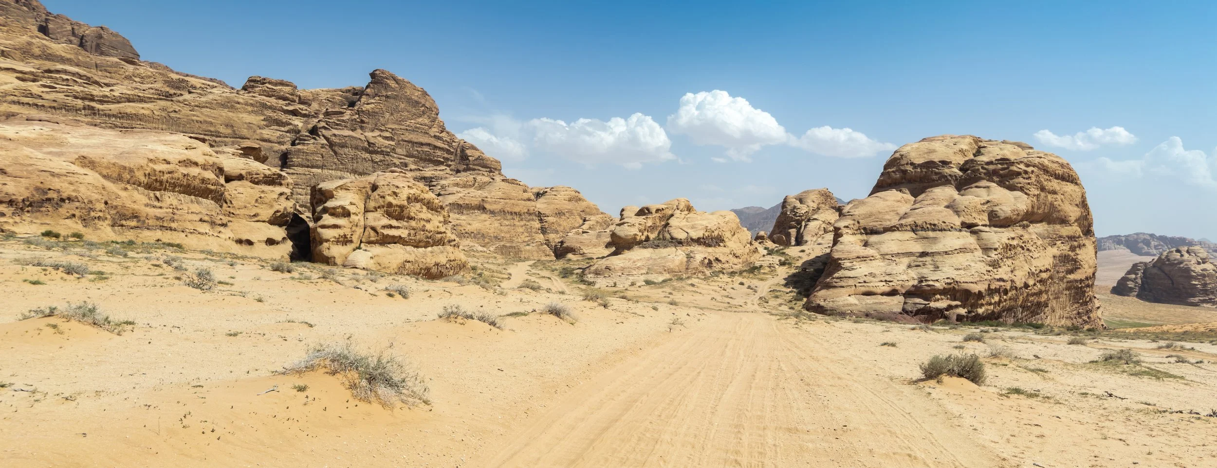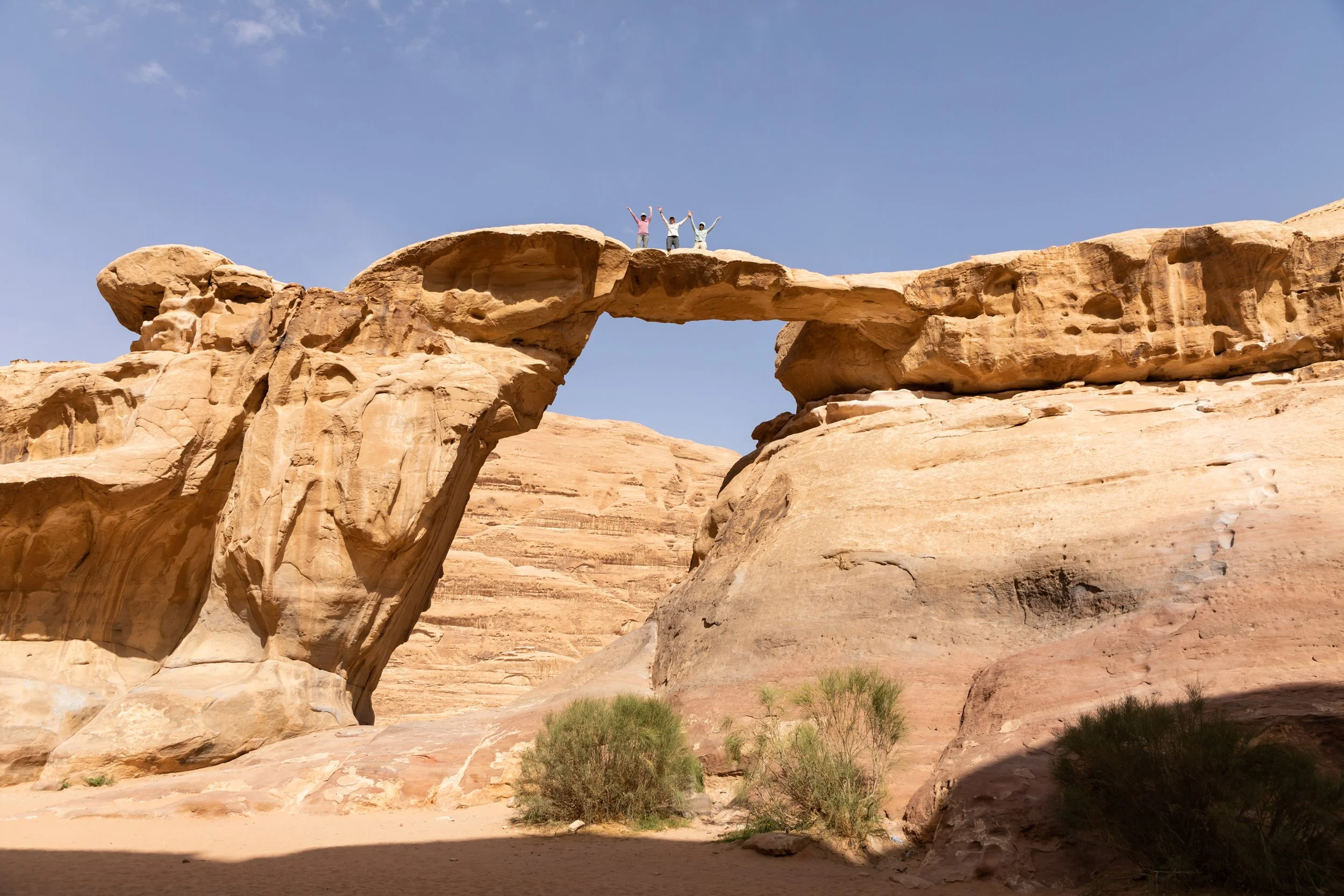 The next morning, we hopped into a van for a scenic drive to another iconic Jordanian landscape, the red sand desert of Wadi Rum, which has been featured in many movies to portray other worlds and the planet Mars. The protected area of Wadi Rum is as big as New York City and includes so much more than just sweeping sand dunes. Giant rock formations, narrow canyons and gorges meander through this spectacular region.