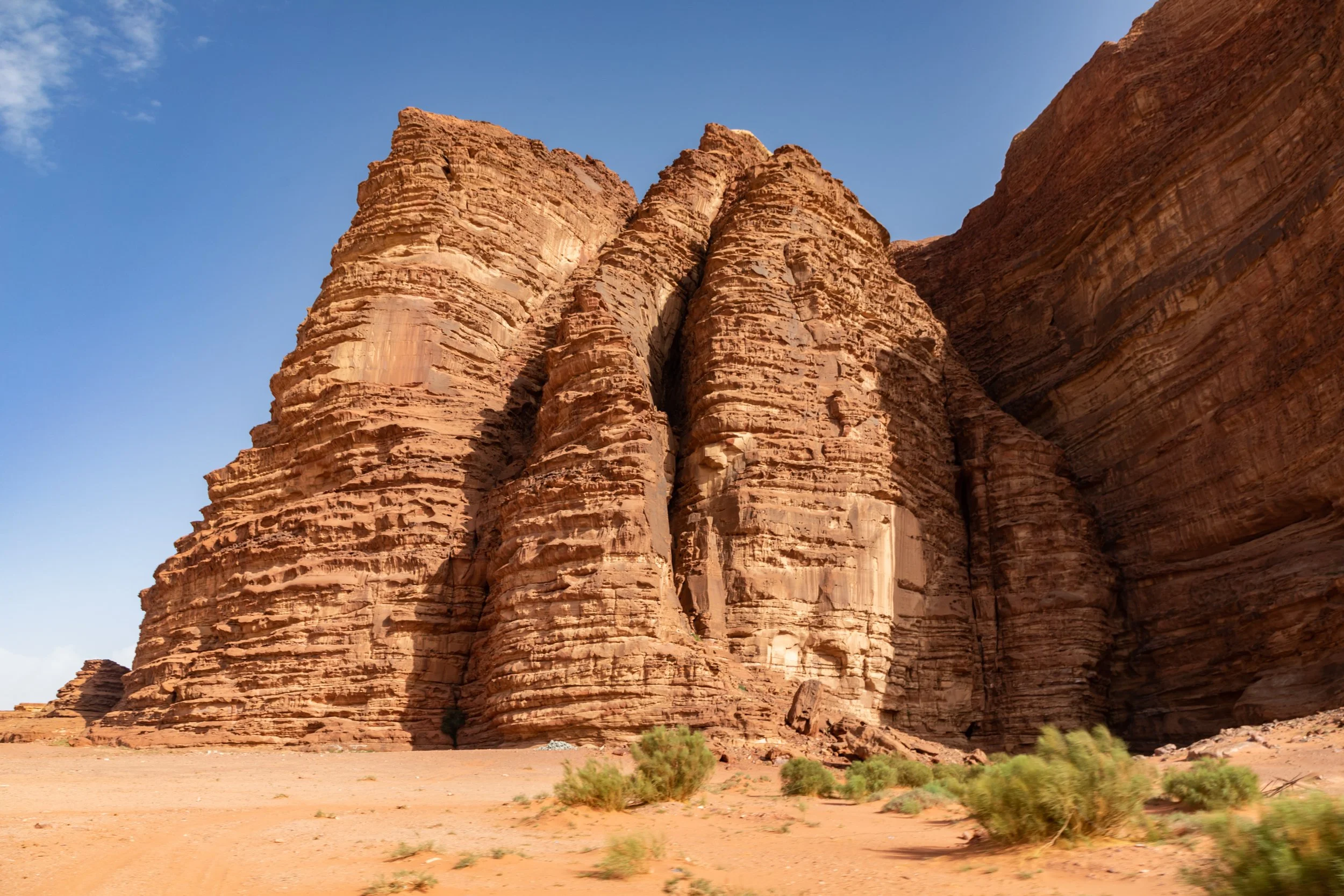 On our climb, we had to keep a lookout for sand worms. Wadi Rum is the stand-in desert used for Arrakis from Dune. The red sands and inhospitable environment are a breeding ground for those monstrous creatures lurking beneath the surface.