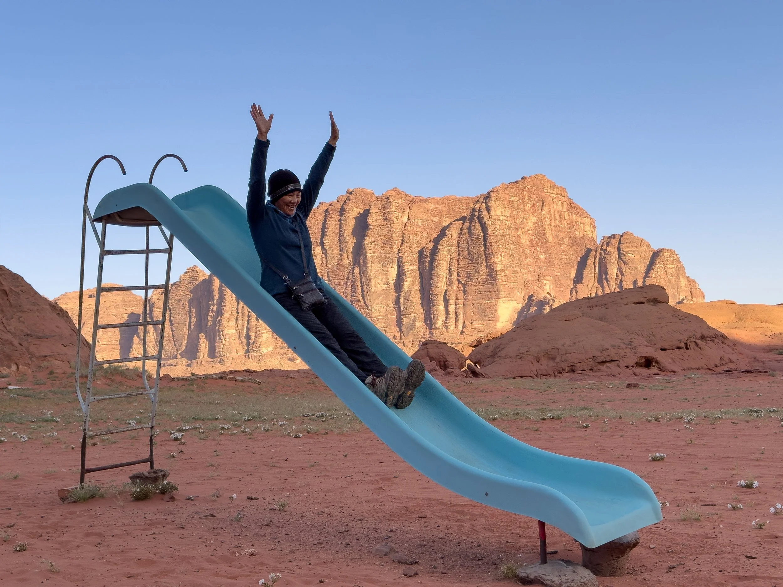 A creaky, old slide with an amazing view in the middle of the desert? How can anyone resist. Definitely not us! We slid down that thing so fast, and the end of the slide shot us out into the air. It was pretty fun.