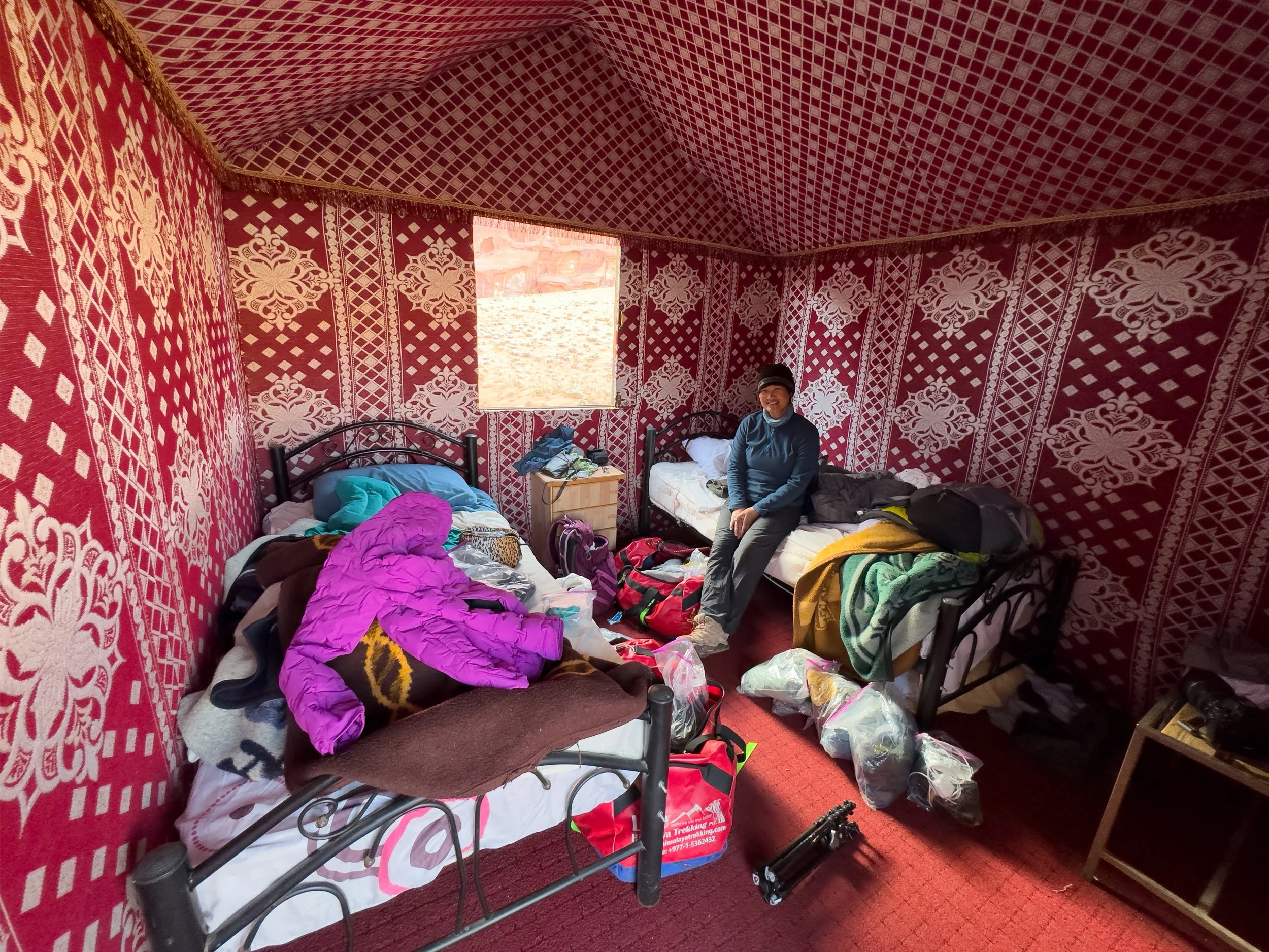 Back at camp, we took refuge in our luxury tents for the hotter part of the day, sorting and repacking all our dirty clothes and gear from the trek that had been thrown haphazardly about the room.