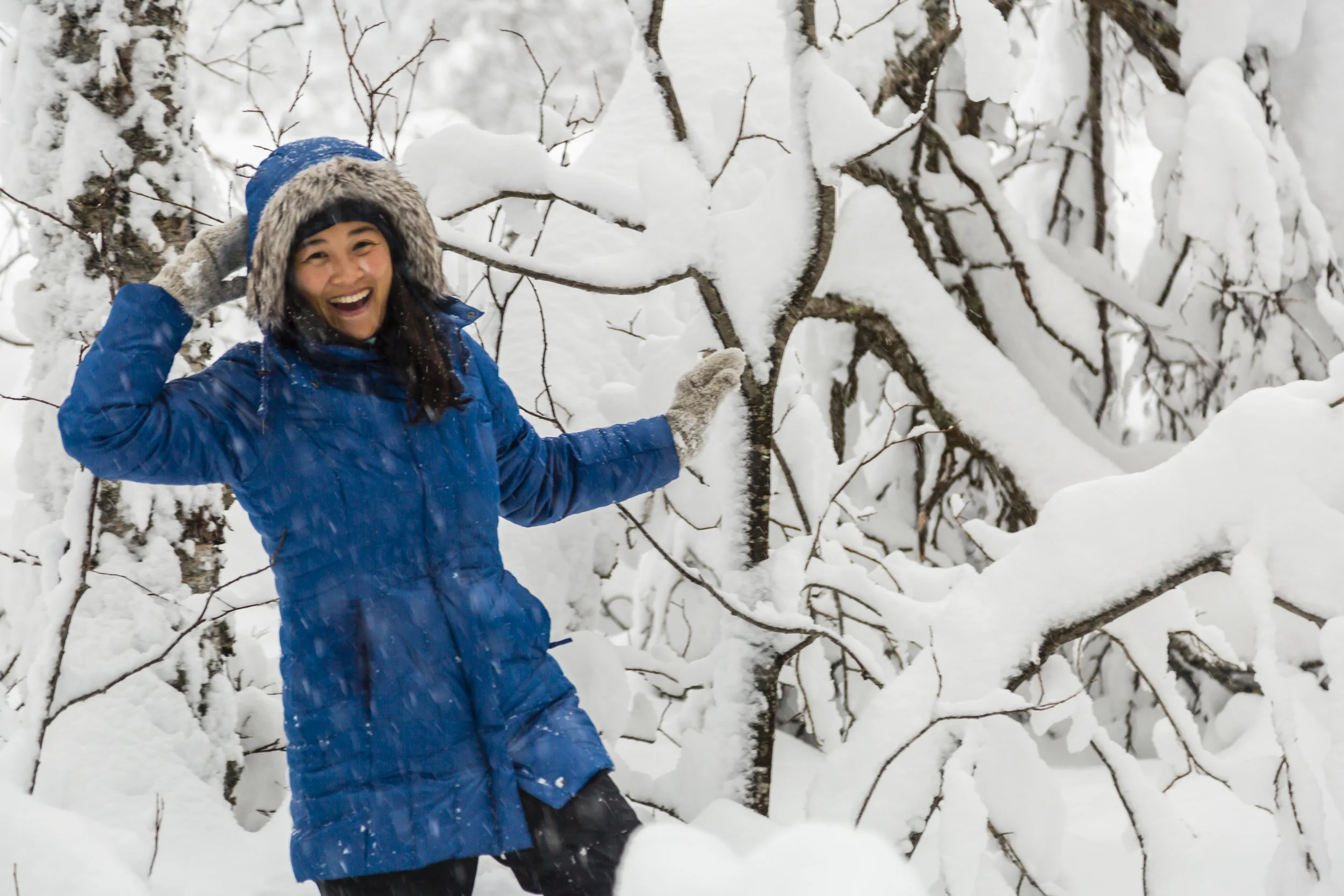Once inside the grove of trees, it truly felt like we had been transported to a whole new magical world where time stood still. So pristine. So white. Untouched and pure. We were in awe. We frolicked in this winter wonderland, jumping off branches and pulling on them to create our own snow avalanches. Our first taste of a Norwegian forest will forever be imprinted with love and laughter in our hearts. This turned out to be one of our favorite moments on this trip.