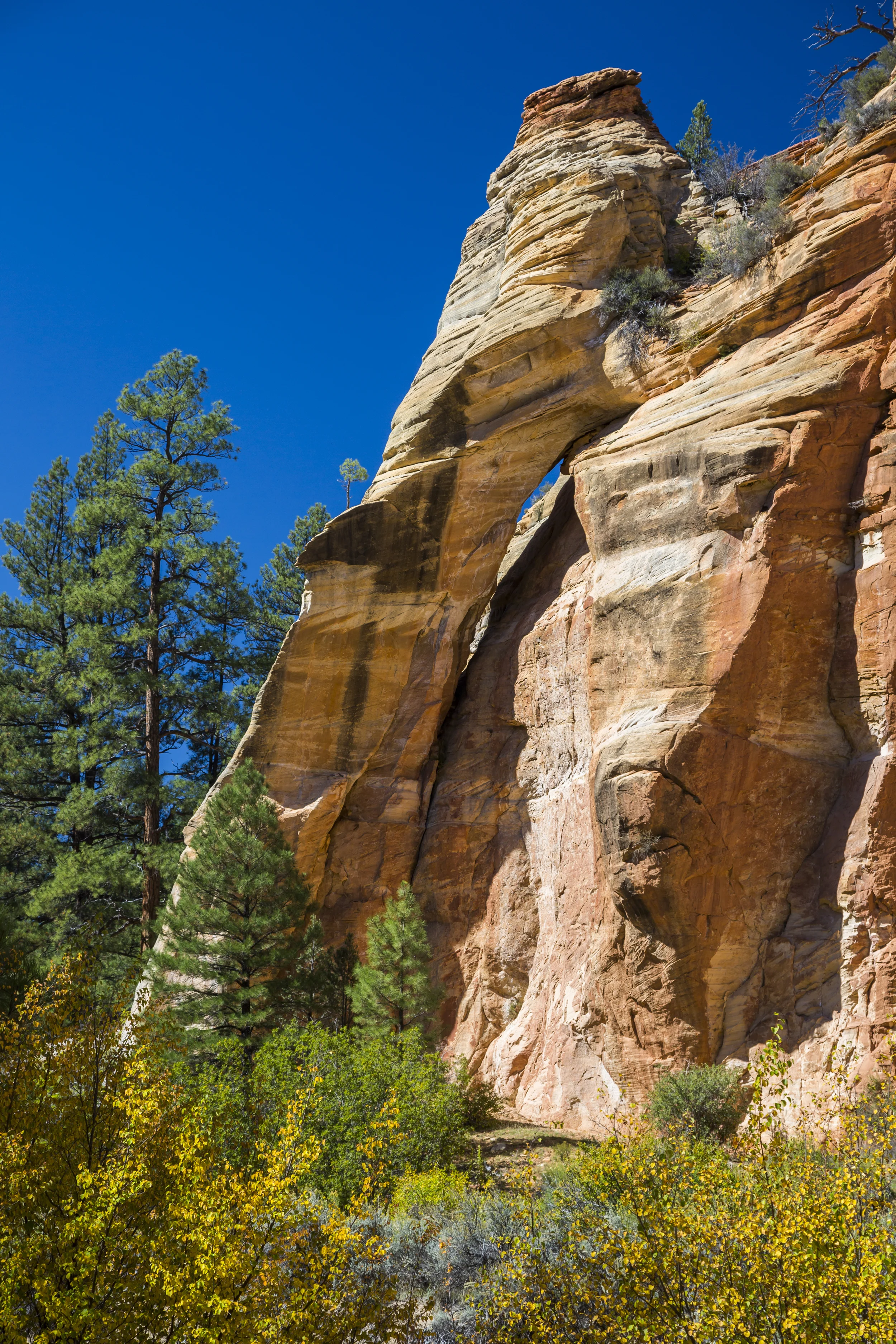 We took a small detour up a short, dry slot canyon. Because of the flash-floods and difficult access, there's not a lot of wildlife in The Narrows. We did find this brightly colored grasshopper however, who seemed out of place amongst the red and brown colored rocks.
